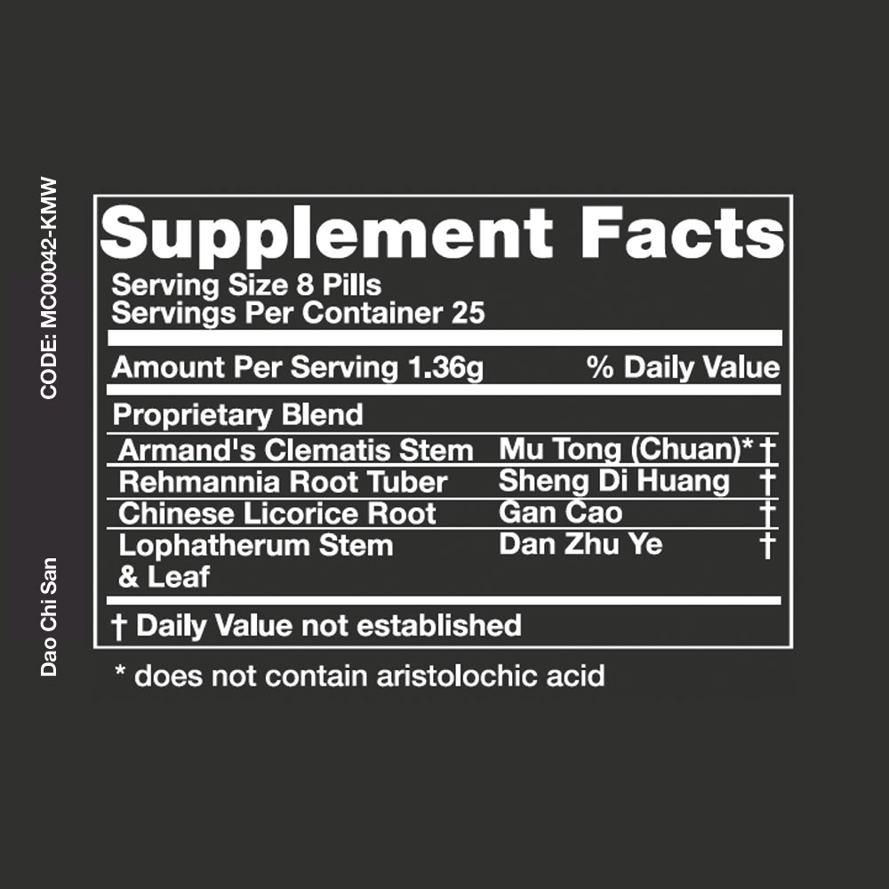 Meridian Classic Dao Chi San Teapills clears heat, drains fire, nourishes yin. Clears heart heat ...