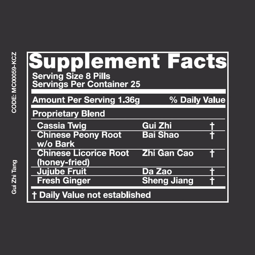 Meridian Classic Gui Zhi Tang Teapills relieves exterior cold syndromes by releasing pathogenic i...