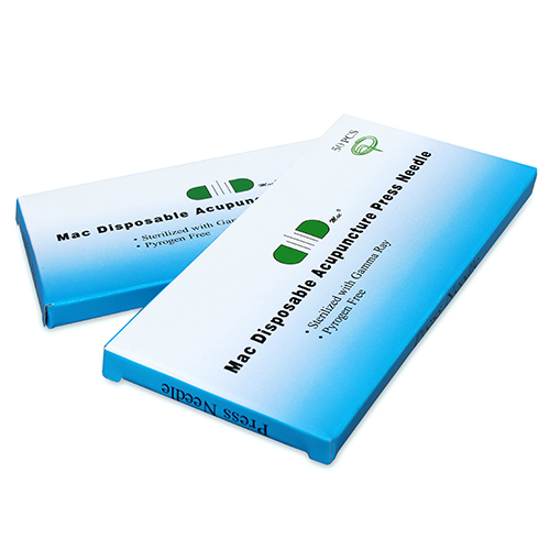 Disposable intradermal acupuncture needles with adhesive backing to adhere to skin surface.