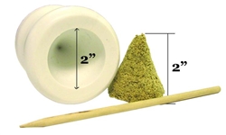 Sims Moxa Cone MakerThis device allows you to easily make your own moxa cones using loose moxa. Comes with a moxa cone mold and wooden stick to retrieve pressed moxa cone. Make large moxa cones measuring 2" High and 2" diameter with a hollow center hole.Directions:Select the appropriate amount of loose moxa.Place the loose moxa into the well of the mold and use fingers to pack tightly.When moxa is firmly packed, insert wooden stick into the center and press firmly once more.Gently pull on the wooden stick, applying a slight rotation if needed to remove the newly made moxa cone.Product Information:Comes with moxa mold made of hard plastic and a smooth wooden stick. Mold measures 2 5/8" H and 2 1/2" diameter. Wooden tool measures 6" long with one flat end and one tapered end.