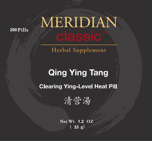 Meridian Classic Qing Ying Tang Teapills clears up the Ying system to cool Blood, removes Heat from the interior for patterns with symptoms such as thirst with desire to drink, fever, rashes, irritability, restlessness, delirium.