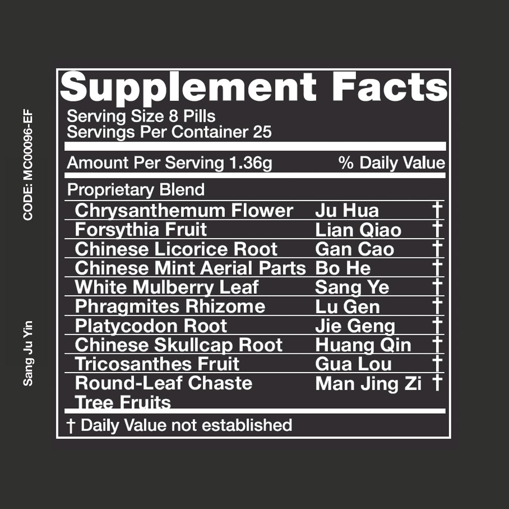 Meridian Classic Sang Ju Yin Teapills dispels pathogenic Wind, clears Heat, resolves toxins, diff...