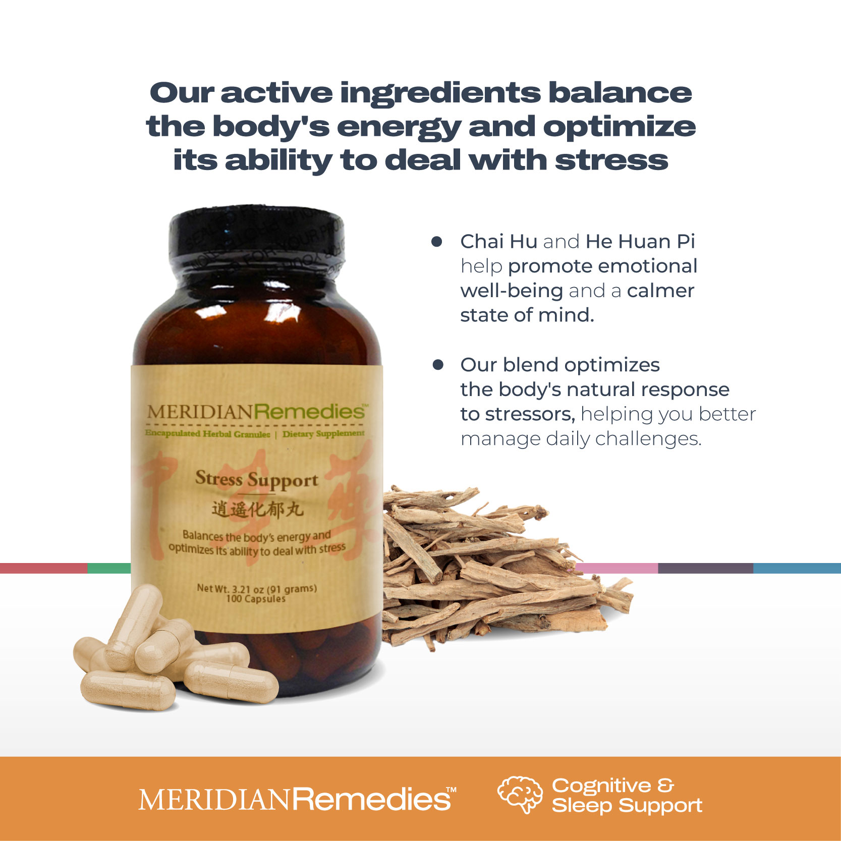 Meridian Remedies Stress Relief balances the body to optimize its ability to deal with stress and...