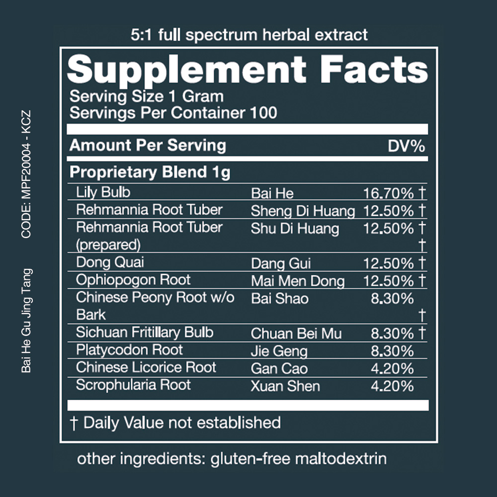 5:1 Full Spectrum Herbal Extract granule powder in gluten-free maltodextrin, water soluble substrate.