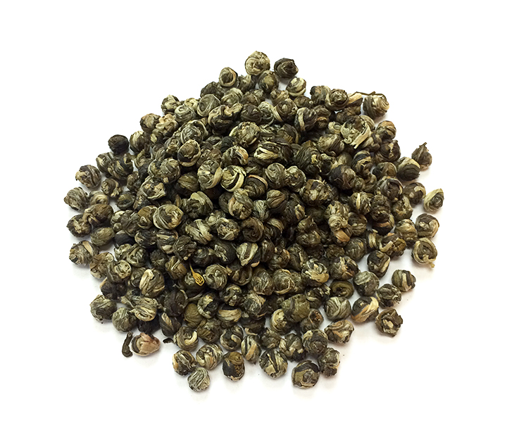 Lavishly infused with jasmine, young tip tea leaves are hand-rolled into small "pearls," which unfurl when steeped. This premium tea fills your cup with a pale orange brew and a warm floral bouquet. A popular and romantic tea, it is a favorite in the summer time, whether hot or iced.