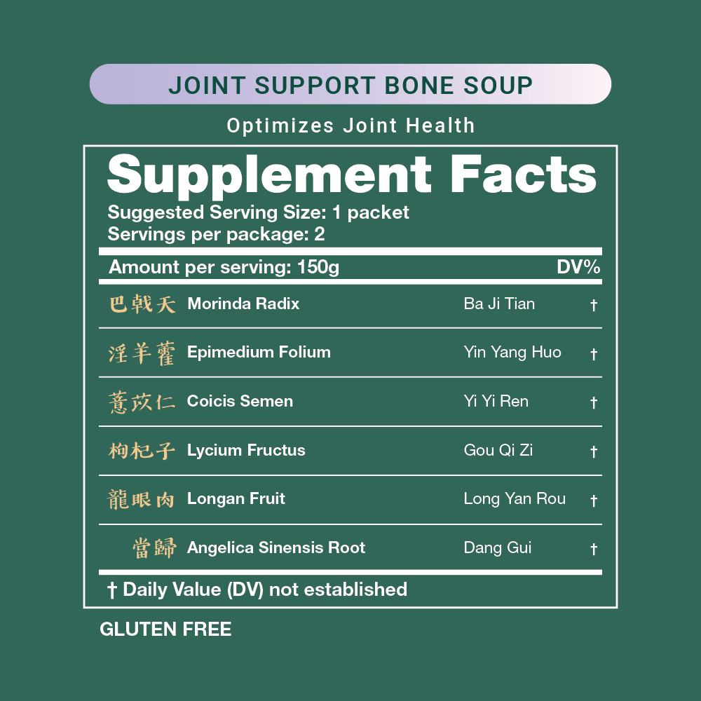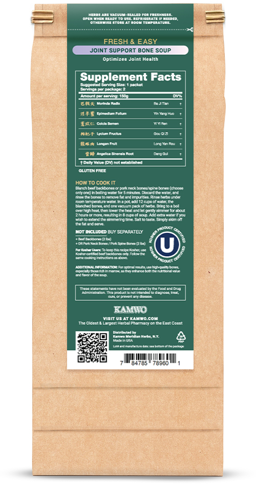 Joint health starts with good Liver & Kidney function in Chinese medicine. As we get older, our liver and kidneys get weaker and thus our joints suffer as a result. This delicious bone soup recipe is formulated to strengthen the bones and tendons thus strengthening the joint. This formulation has been used by Chinese medicine practitioners for many generations.