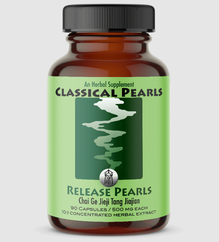 Release Pearls is based on the design of Chai Ge Jieji Tang (Bupleurum and Kudzu Decoction to Release the Muscle Layer), which first appeared in the 15th century medical source book Six Texts on Disorders Caused by Cold (Shanghan liushu). The unorthodox design of the original formula features a clinically highly effective combination of wind dispersing herbs that simultaneously enter all three yang channels: shaoyangyangming and taiyang.
